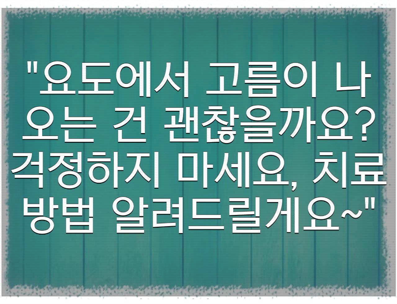 "요도에서 고름이 나오는 건 괜찮을까요? 걱정하지 마세요, 치료 방법 알려드릴게요~"